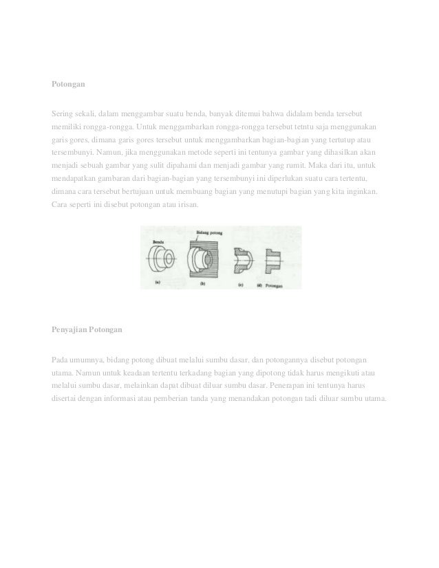 / Dalam Menggambar Suatu Benda, Sering Kita Temukan Bahwa Di Dalam Benda Terdapat Rongga- Rongga. Untuk Menggambarkan Bagian-Bagian Yang Tertutup Atau Tersembunyi Tersebut Digunakan Garis Putus-Putus. Namun, Jika Garis Putus-Putus Terlalu Banyak Maka Gambar Yang Akan Dihasilkan Akan Menjadi Sulit Dipahami Karena Rumit. Untuk Menanggulangi Hal Tersebut, Kita Dapat Membuat : Soy Crenz Gambar Teknik Mesin : Tangannya yang mungil memegang batangku yang masih ada di balilk celana pendekku.